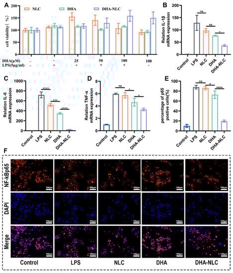 2.2.2. Effect of DHA-Loaded NLC on the Expression of Cellular Inflammatory Factors