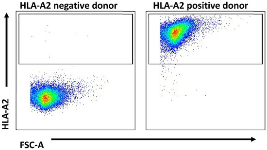 HLA-A*0201 typing was performed as previously reported by staining PBMCs with anti-human HLA-A*0201 FITC conjugated antibodies (Biolegend, San Diego, CA, USA) for 30 min at 4 °C in the dark [39]. Data acquisition was performed using a BDTM LSR II flow cytometer, and data were analyzed using FlowJo software (Becton Dickinson, New York, NY, USA).