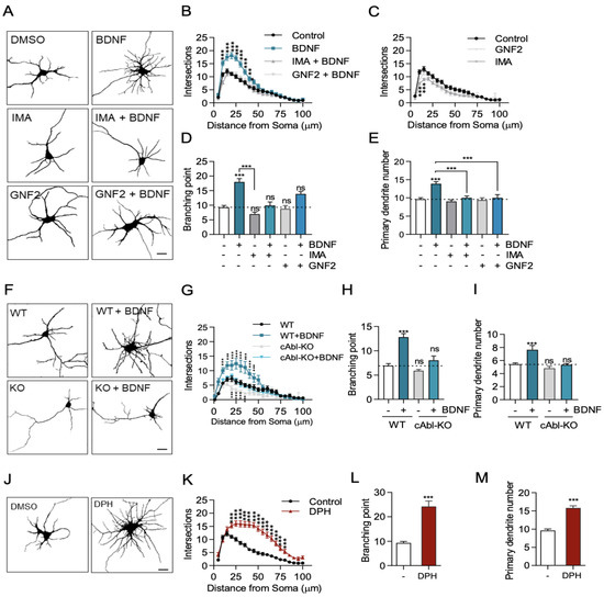 2.1. c-Abl Is Required for BDNF-Induced Dendritic Arborization