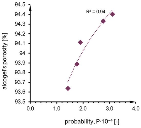 An alcogel’s porosity due to probability value—results for experimental syntheses.