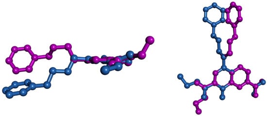 Superimposition of the 4d independent molecules A (pale blue) and B (magenta).