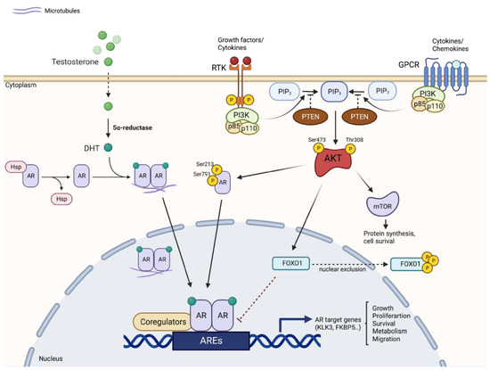 On the other hand, inactivation of AR would lead to over-regulation of the PI3K/AKT pathway, which has been correlated with altered control of cell growth and survival, increased metastatic competence, angiogenesis, and resistance to chemotherapy.