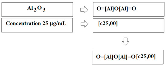 The scheme of building up quasi-SMILES for the situation where the impact of nano-oxide of aluminium in concentration 25 mg/mL is examined.