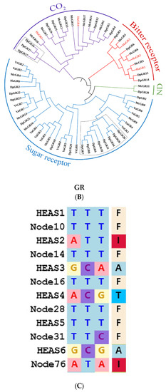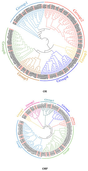 Cytochrome P450 monooxygenases (CYPs) can specifically and non-specifically neutralize various types of humus [15,16,17]. Most CYP3 genes are involved in the metabolic detoxification of secondary plant substances to help insects better adapt to host plants [18,19]. The CYP4 subfamily has been associated with lipid metabolism, epidermal hydrocarbon formation, and insect olfactory recognition regulation [20]. Several CYP2 and mitochondria P450 genes play vital roles in regulating the growth and development or preventing the invasion of pathogens and substances [20,21]. Chemoreceptions provide attractive models to understand how organisms adapt to diverse diets because they lie between external environmental signals and internal physiological responses [22]. Olfactory receptors (ORs) and odorant-binding proteins (OBPs) participate in the olfactory response of insects by recognizing and binding host plant volatiles [20]. Olfactory responses are fundamental to the life cycles of insects, which they use for foraging, communicating with conspecifics, and recognizing predators [23]. The differences in food selection are likely to reflect the difference in their gustatory responsiveness. Gustatory receptors (GRs) are well known for their functions in sensory neurons in detecting food and toxins [24]. The expression of GRs across different tissues and sexes is a strong candidate for mediating unusual feeding behavior [25]. Therefore, identifying these gene families is beneficial for elucidating the mechanism of the dietary transition in immunity, recognition, and detection.