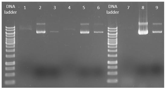 - Surzycki, S. Agarose Gel Electrophoresis of DNA. In Basic Techniques in Molecular Biology; Surzycki, S., Ed.; Springer: Berlin/Heidelberg, Germany, 2000; pp. 163–191. [Google Scholar]