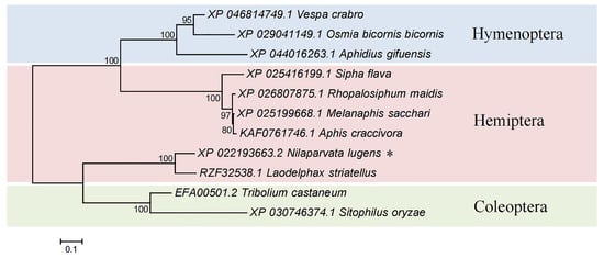 - Yuan, M.; Lu, Y.; Xun, Z.; Hu, W.; Muhammad, S.; Sha, Z.; Jin, B.R.; Li, J.; Wang, X.W.J.P.O. Selection and evaluation of potential reference genes for gene expression analysis in the brown planthopper, Nilaparvata lugens (Hemiptera: Delphacidae) using reverse-transcription quantitative PCR. PLoS ONE 2014, 9, e86503. [Google Scholar] [CrossRef] [PubMed]