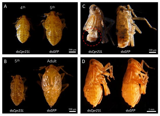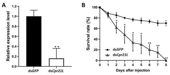 2.3. Effects of Cpr21L Knockdown on the Survival and Development of BPH