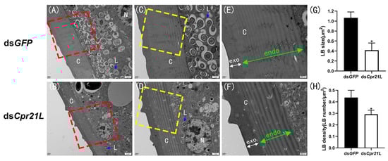 2.4. Effects of Cpr21L Knockdown on the Structure of the Epidermis and Cuticle