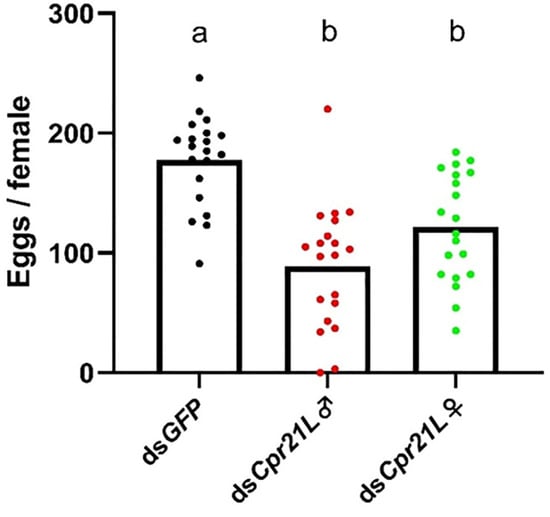 2.5. RNAi of Cpr21L Impacted the Fecundity of Adults