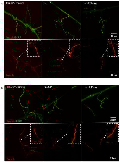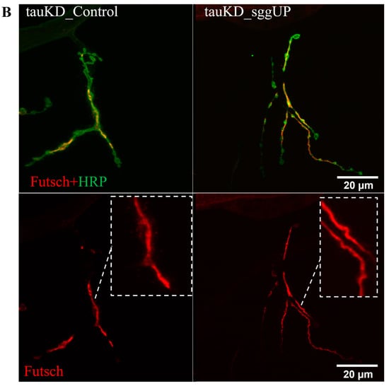 2.2.2. Overexpression of the RA Transcript of the Tau Gene Does Not Affect the Distribution of the Microtubule-Associated Futsch Protein