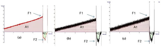 | Sample | Area 1 [g s] (Cohesion) | Area 2 [g s] (Adhesiveness) | Force 1 [g] (Maximum Compression Force) | Force 2 [g] (Minimum Retraction Force) |