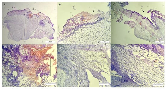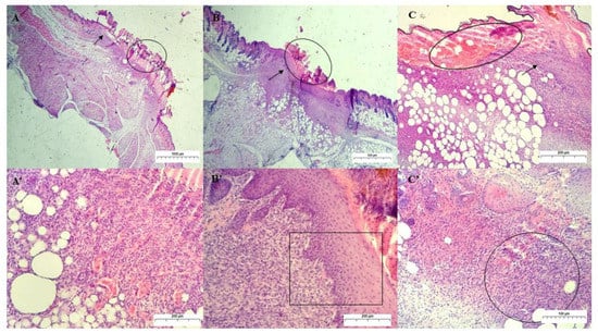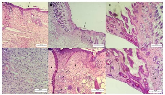 3.7.8. Qualitative Histological Evaluation of the Skin Lesion