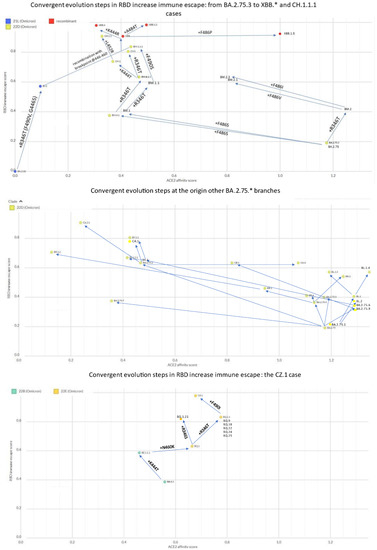 - Roemer, C.H.; Hisner, R.; Frohberg, N.; Sakaguchi, H.; Gueli, F.; Peacock, T. SARS-CoV-2 Evolution, Post-Omicron. Available online: https://virological.org/t/sars-cov-2-evolution-post-omicron/911 (accessed on 26 November 2022).