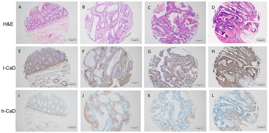 2.1. l-CaD and h-CaD Expression in Colorectal Cancer and Normal Colon Mucosa