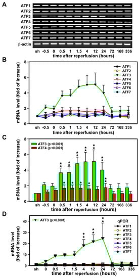 2.1. Induction of ATF3 mRNAs in the Ischemic Cortex after Ischemia-Reperfusion