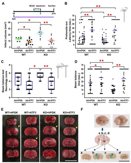 2.2. ATF3 Attenuates Brain Infarct upon Transient Ischemic Insult