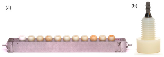 Sterile units of commercially available, Straumann® Tissue Level Standard dental implants (Institute Straumann AG, Basel, Switzerland), of 8 mm in length and 3.3 mm in diameter, containing the patented sand-blasted and acid-etched moderately rough surface (SLA), were fixed in customized Robbins devices (Figure 5).