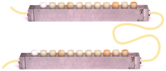 A multi-species dynamic in vitro biofilm model was developed, as previously described by Ribeiro-Vidal et al. (2019) [22,23], with the modification of placing the Robbins devices (Figure 6) in series.