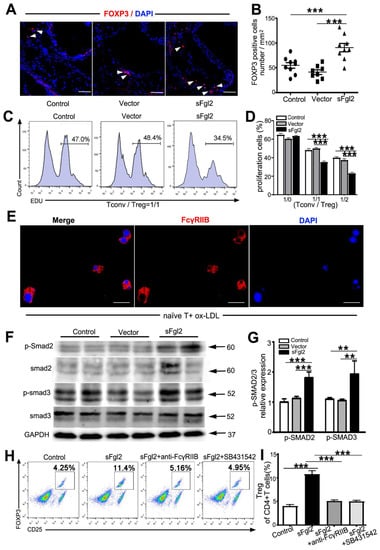 Taken together, sFgl2 could increase the abundance and function of Tregs by binding to FcγRIIB receptors and phosphorylating Smad2/3.