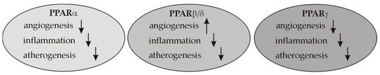 - Wagner, N.; Wagner, K.D. PPARs and Angiogenesis-Implications in Pathology. Int. J. Mol. Sci. 2020, 21, 5723. [Google Scholar] [CrossRef] [PubMed]