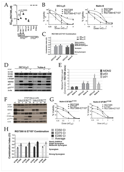 2.4. E7107 Sensitizes B-Cell Lines to Non-Genotoxic MDM2 Inhibition with RG7388