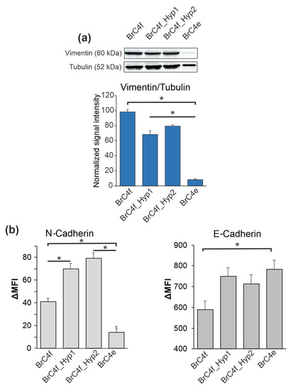 - Hollestelle, A.; Peeters, J.K.; Smid, M.; Timmermans, M.; Verhoog, L.C.; Westenend, P.; Heine, A.A.J.; Chan, A.; Sieuwerts, A.M.; Wiemer, E.; et al. Loss of E-cadherin is not a necessity for epithelial to mesenchymal transition in human breast cancer. Breast Cancer Res. Treat. 2013, 138, 47–57. [Google Scholar] [CrossRef] [PubMed]