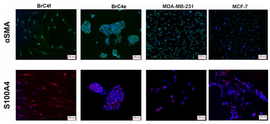 2.3. Identification of the Molecular Markers of Cancer-Associated Fibroblasts in BrC4f Cells