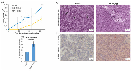 - Nushtaeva, A.A.; Karpushina, A.A.; Ermakov, M.S.; Gulyaeva, L.F.; Gerasimov, A.V.; Sidorov, S.V.; Gayner, T.A.; Yunusova, A.Y.; Tkachenko, A.V.; Richter, V.A.; et al. Establishment of primary human breast cancer cell lines using “pulsed hypoxia” method and development of metastatic tumor model in immunodeficient mice. Cancer Cell Int. 2019, 19, 46. [Google Scholar] [CrossRef]