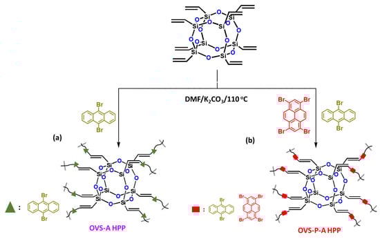 Synthesis of (a) OVS-A HPP and (b) OVS-P-A HPP through Heck reaction.