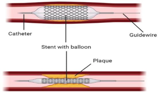 A graphical demonstration of stent with balloon angioplasty to open narrowed arteries. (Created with BioRender.com).
