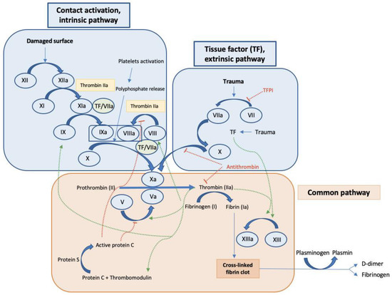 All these proteolytic cascades can act together to further facilitate the formation of the fibrin clot, thus promoting coagulation (Figure 1) [45].