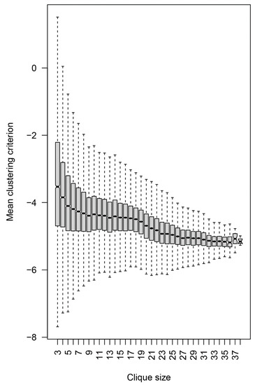 The feature selection algorithm consisted of a filter and a wrapper stage. In the filter stage, the 3- and 4-cliques of the graph were each tested as a subspace of the 4512-dimensional reactivity space for their capacity to map the three diagnostic groups to well separable clusters. Those with clustering criterion (see below) better than the 95th percentile of the distribution of the criterion calculated from mappings on random samples of reactivities of the same dimensionality (the same number of 3 or 4 peptides) were filtered as candidates for the classifier.