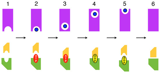 - Smith, P.C.; Karpowich, N.; Millen, L.; Moody, J.E.; Rosen, J.; Thomas, P.J.; Hunt, J.F. ATP binding to the motor domain from an ABC transporter drives formation of a nucleotide sandwich dimer. Mol. Cell 2002, 10, 139–149. [Google Scholar] [CrossRef]