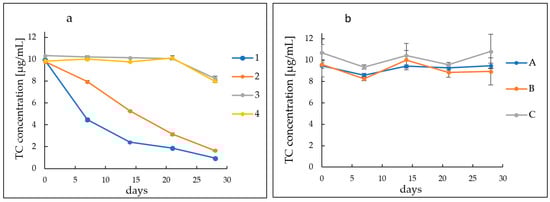 18]. HPLC analysis found that despite the preserved external conditions and formulation, which favourably affects the stability of TC, excessively alkaline values of the formulation lead to rapid degradation of the antibiotic. At the same time, it can also be concluded that the type of carbomer used has no significant effect on TC stability.