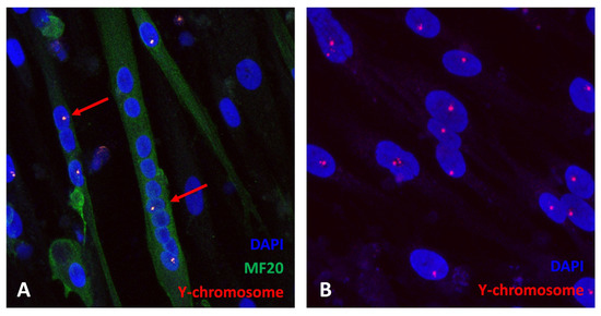 2.1. Myotube-MABs Fusion Events Can Be Visualised by Using a Y-Chromosome FISH Probe