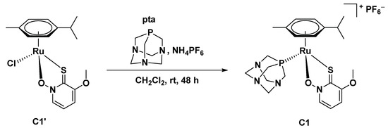 Ligand 1-hydroxy-3-methoxypyridine-2(1H)-thion (L1), its chlorido C1′, and pta complex C1 were prepared according to the reported protocol in [46].