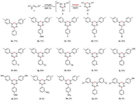 3.3. Synthesis of Verdazyls 3 (General Procedure)