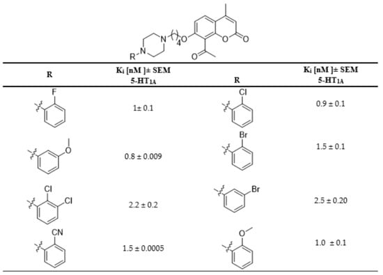 Selected 5-HT1A receptor affinities of previously synthesized coumarin derivatives.