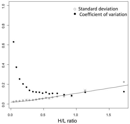 Therefore, we excluded a constant SD and constant CV model for our data and adopted the following model describing the SD as a function of H/L ratio r: