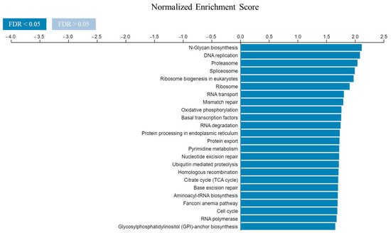 The LinkedOmics database (http://www.linkedomics.org, Zhang Lab, Baylor College of Medicine, Huston, TX, USA, last access date 13 November 2022) is a visual platform used to explore the gene expression profile [66]. LinkedOmics was used to determine the CDK4 and EXT2 co-expressed genes through Pearson’s correlation coefficient. The results were shown via heat maps. Then, the KEGG pathways of the positively related genes of both CDK4 and EXT2 were explored by using gene set enrichment analysis (GSEA).