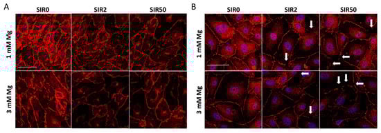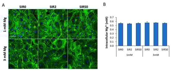 2.2. The Effects of Mg and SIR on hCAEC Cytoskeletal Organization and Mg2+ Intracellular Content