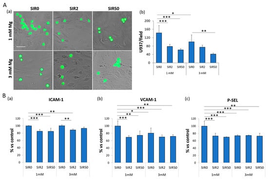 2.4. The Effects of Mg and SIR on the Interaction between hCAEC and Monocyte-Like Cells
