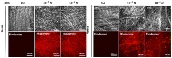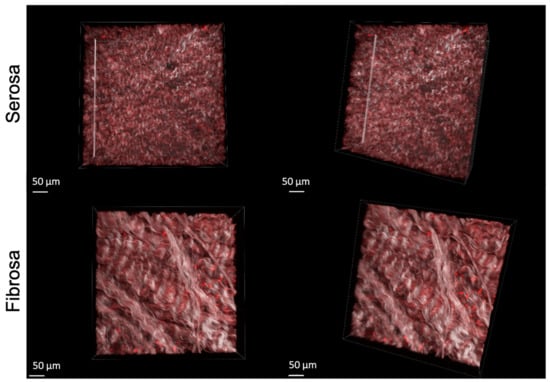 Figure 2 illustrates the 3D reconstruction of the serosa and fibrosa layers of DBP functionalized with 10−4 M of REDV peptide.