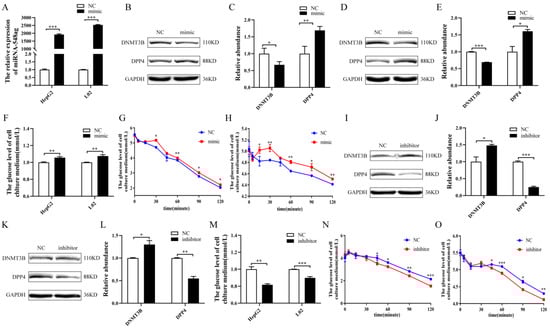 2.3. miR-548ag Impaired the Glucose Metabolism in Hepatocytes via DNMT3B Downregulation to Promote DPP4 Expression