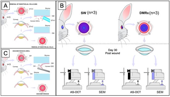 - Okumura, N.; Matsumoto, D.; Fukui, Y.; Teramoto, M.; Imai, H.; Kurosawa, T.; Shimada, T.; Kruse, F.; Schlotzer-Schrehardt, U.; Kinoshita, S.; et al. Feasibility of cell-based therapy combined with descemetorhexis for treating Fuchs endothelial corneal dystrophy in rabbit model. PLoS ONE 2018, 13, e0191306. [Google Scholar] [CrossRef]