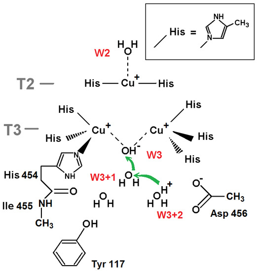 Figure 1). In the present work, the protonation of the laccase’s oxygen ligands in these two stable states is estimated via DFT calculations.