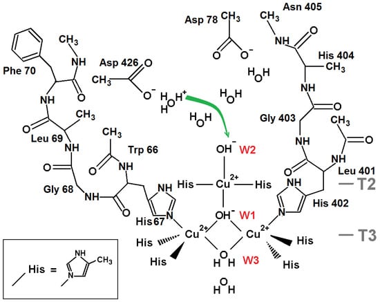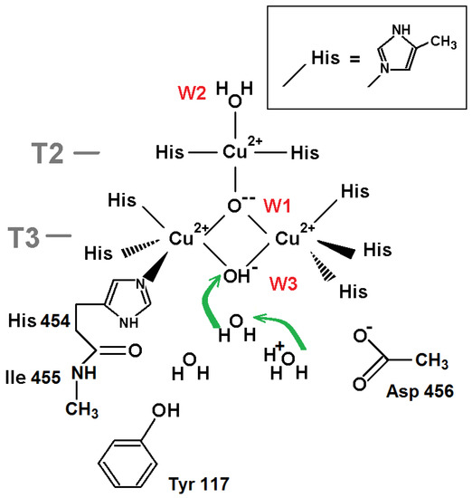 13]. Those QM calculations based on the density functional theory (DFT) agreed with the suggested reaction mechanism and demonstrated a strong dependence of obtained energies on the protonation state of the oxygen ligands coordinating the TNC copper ions [