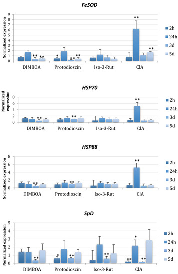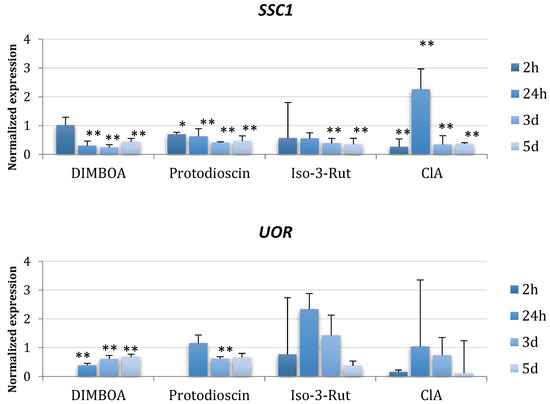 2.2. Expression Changes of Primary Metabolic Genes in the Presence of Plant Metabolites