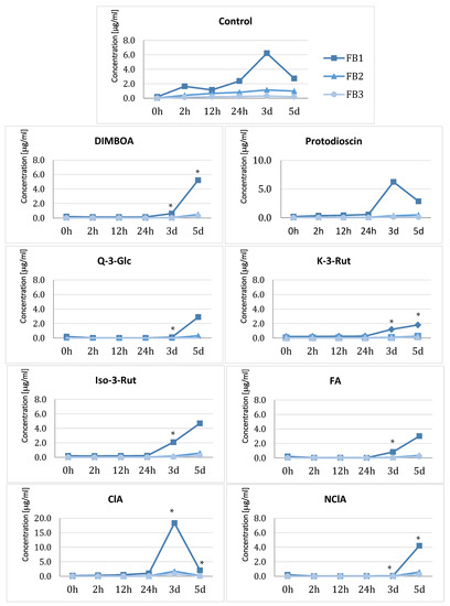 Chicago/Turabian StyleLalak-Kańczugowska, Justyna, Natalia Witaszak, Agnieszka Waśkiewicz, Jan Bocianowski, and Łukasz Stępień. 2023. "Plant Metabolites Affect Fusarium proliferatum Metabolism and In Vitro Fumonisin Biosynthesis" International Journal of Molecular Sciences 24, no. 3: 3002. https://doi.org/10.3390/ijms24033002
