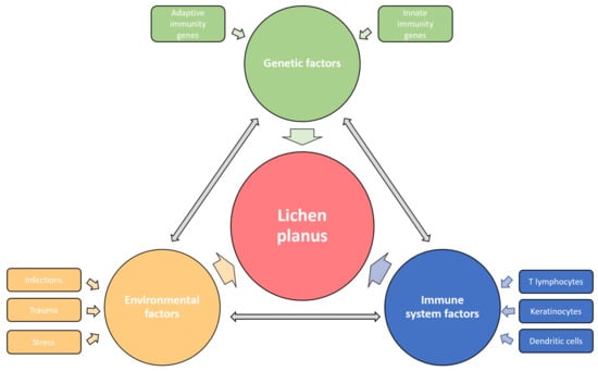 Vičić, M.; Hlača, N.; Kaštelan, M.; Brajac, I.; Sotošek, V.; Prpić Massari, L. Comprehensive Insight into Lichen Planus Immunopathogenesis. Int. J. Mol. Sci. 2023, 24, 3038. https://doi.org/10.3390/ijms24033038